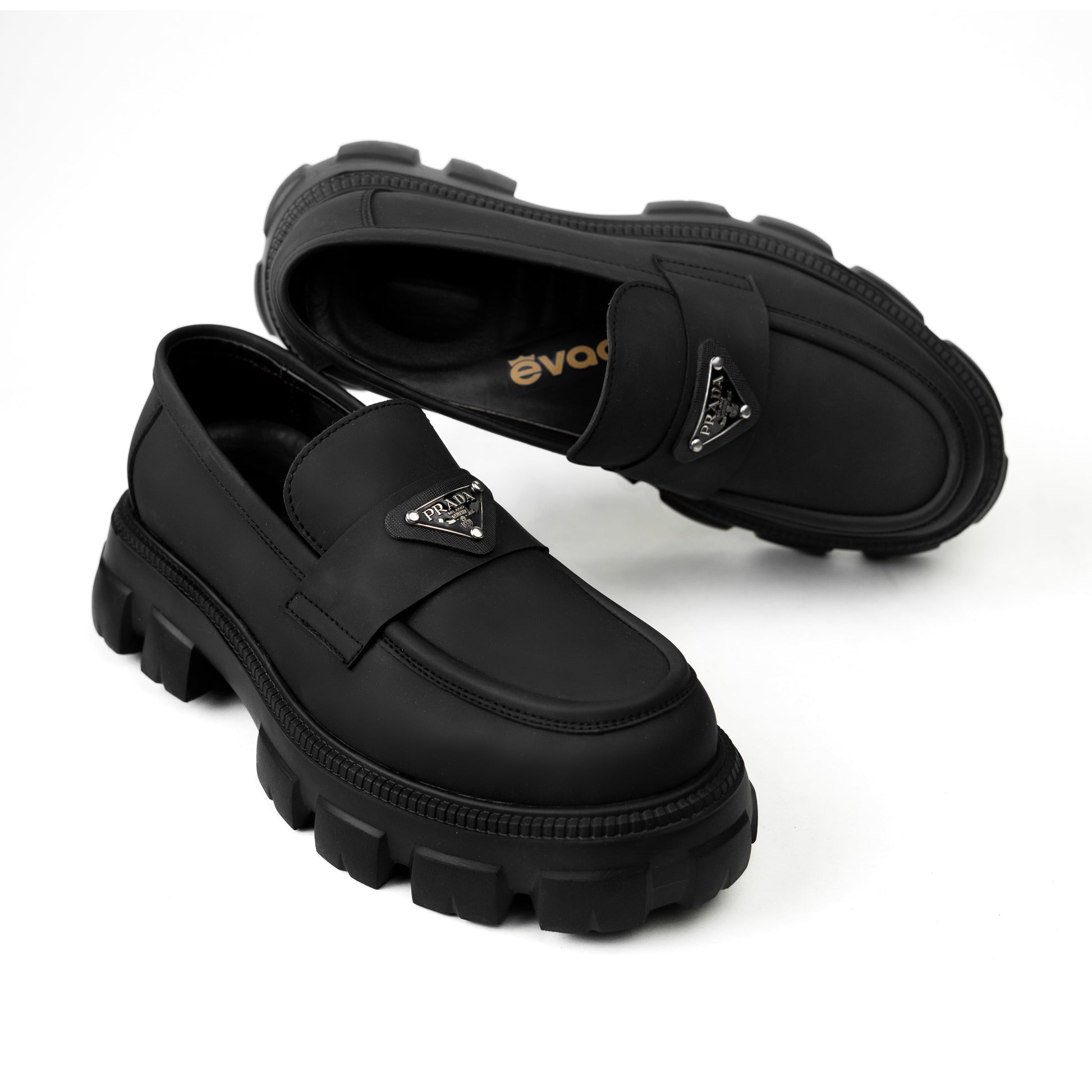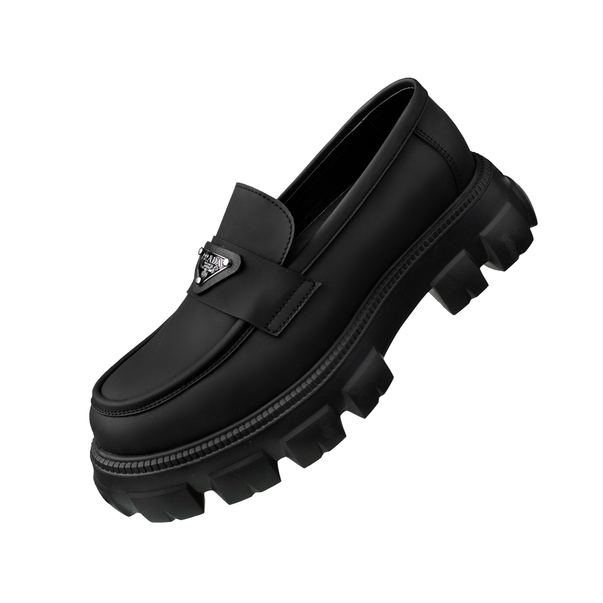 Crafted from premium genuine leather in a deep charcoal-black shade, these Prada shoes embody timeless elegance with a contemporary edge. The design features a bold, elevated outsole with a striking profile, adding both character and durability to every step. Despite their solid build, they are remarkably lightweight, offering exceptional comfort without compromising on style. The refined leather finish highlights Prada’s signature craftsmanship, while the robust sole ensures stability and ease of movement. Perfectly balancing sophistication and modern functionality, this pair transitions effortlessly from smart casual looks to elevated everyday wear — making it a versatile statement piece in any wardrobe.